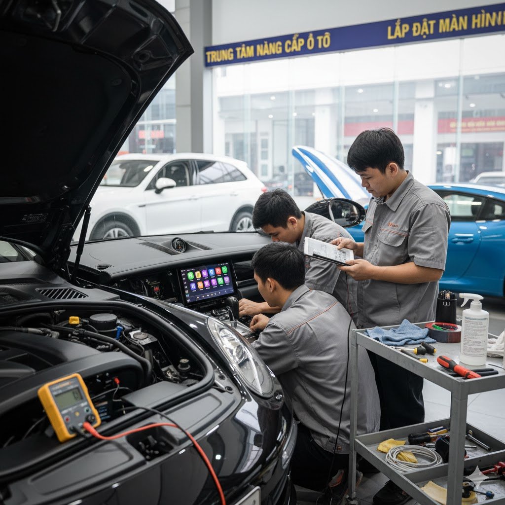 Việc lắp đặt màn hình Android cần được thực hiện bởi các kỹ thuật viên có chuyên môn. Đấu nối điện không đúng cách có thể gây ra các vấn đề như chập điện, hao điện, hoặc thậm chí gây hỏng hệ thống điện của xe. Mekong Car với đội ngũ kỹ thuật viên giàu kinh nghiệm sẽ đảm bảo quá trình lắp đặt diễn ra an toàn và chuyên nghiệp nhất.